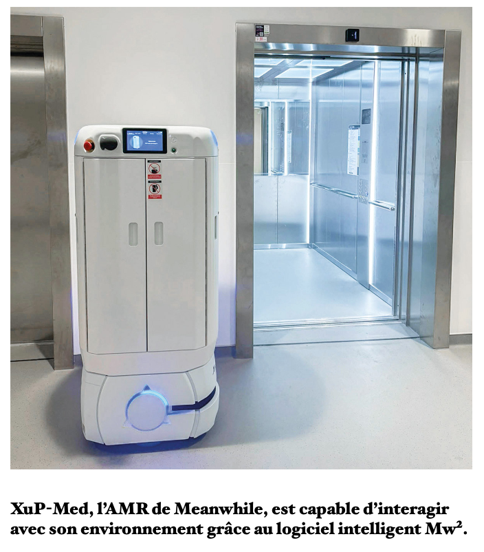 Meanwhile propose également XuP-Lift et XuP-Box pour le transport unitaire de bac, XuP-Cart pour le déplacement de chariots, ainsi qu’AGILOX ONE NFK, spécialement conçu pour les charges lourdes, capable de transporter chariots et armoires roulantes. Le logiciel Mw² assure quant à lui la communication entre robots, équipements péri-robotiques et infrastructure, permettant aux AMR d’évoluer de manière intelligente et d’optimiser leurs performances grâce à des outils avancés de gestion et d’analyse des flux. Autant de solutions pour révolutionner les transports intralogistiques et maximiser l’efficacité des établissements de santé.