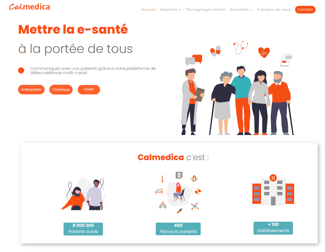 Calmedica et le groupe Webhelp Medica se sont associés (Fin décembre 2021) pour développer de nouvelles offres proposant un suivi patient caractérisé par la présence et l’expertise essentielle du professionnel de santé augmentée par les technologies du digital. Cette alliance permet, entre autres, à Calmedica de compléter sa solution de télésurveillance par un suivi téléphonique par un professionnel de santé pour les parcours concernés. Parallèlement, sur la base de la plateforme de Calmedica, Webhelp est désormais en capacité d’élargir le nombre de patients pouvant bénéficier du suivi de ses équipes d’infirmières et d’adresser de nouveaux besoins.